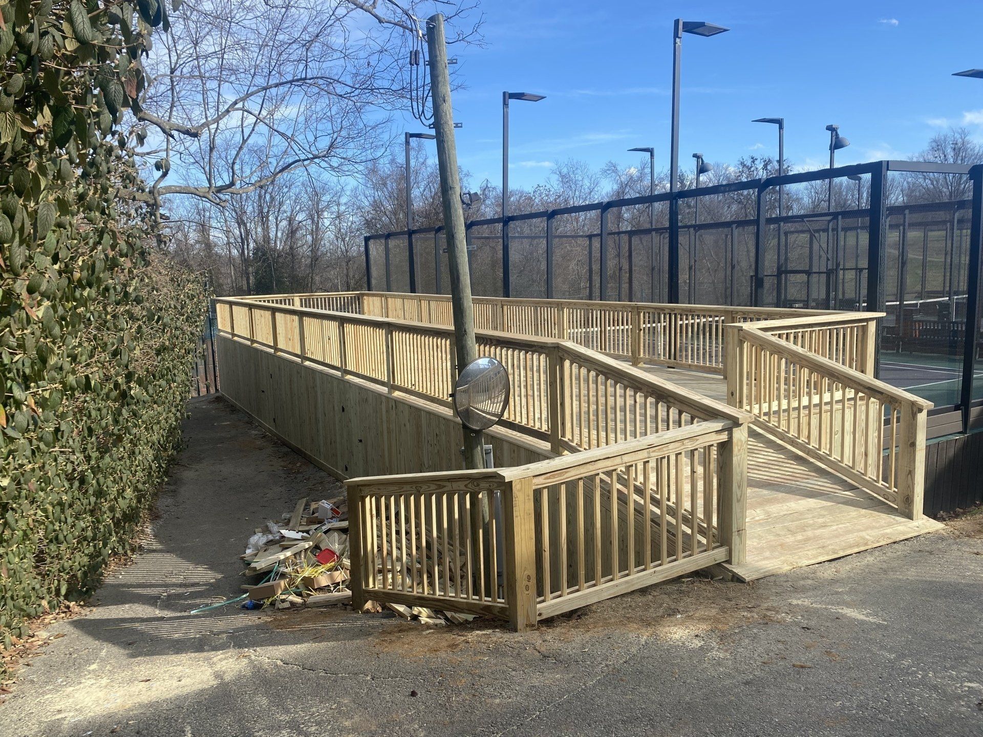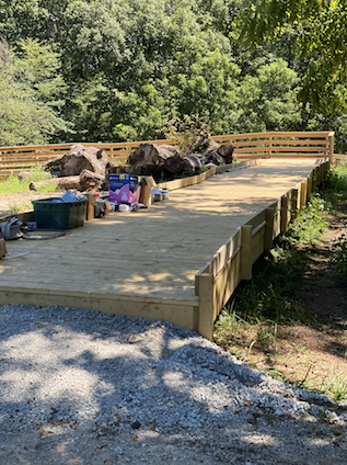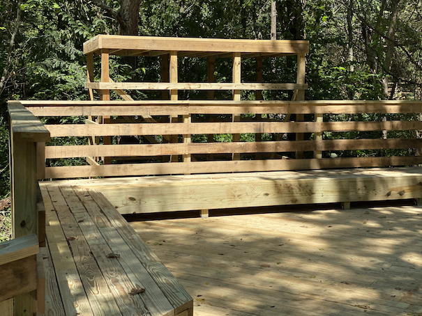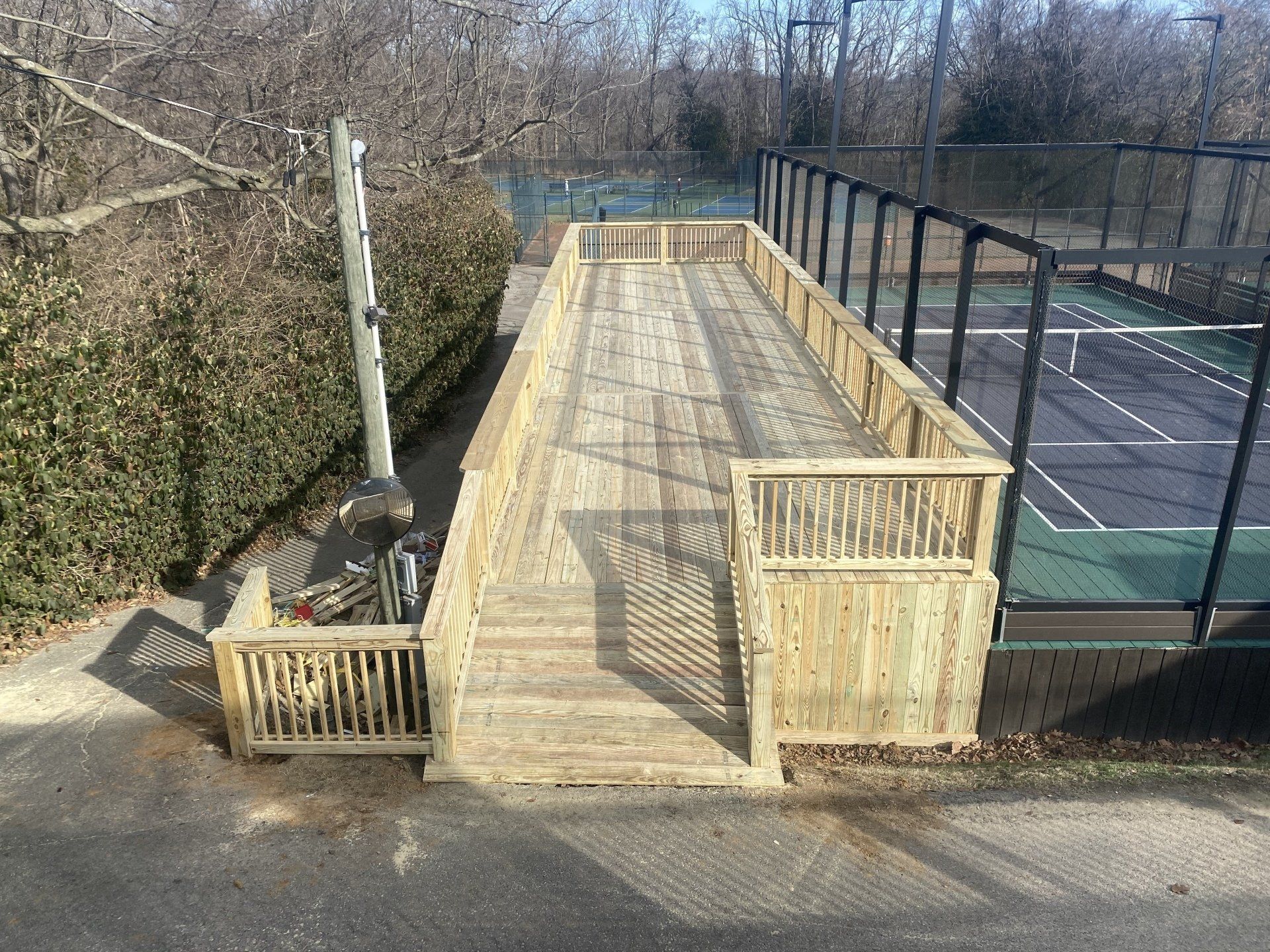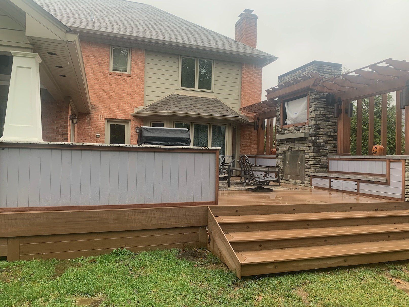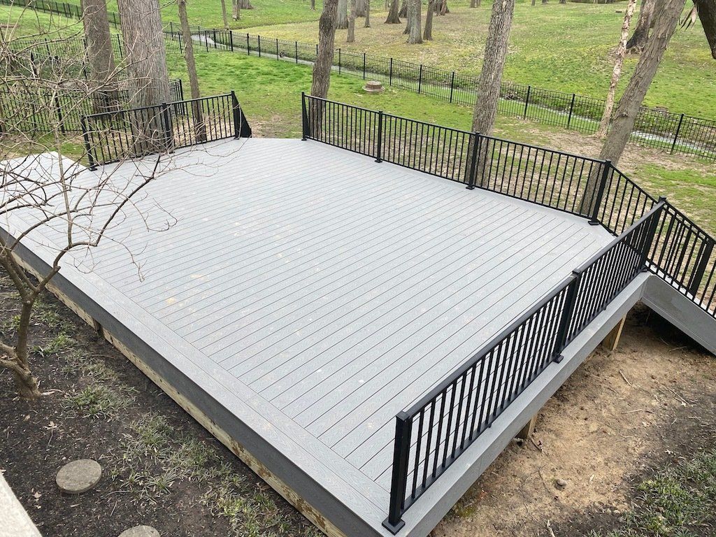 Total deck area of more than 700 square feet. Elizabethtown project features Trex Transcend Tree House decking, Westbury railing and medium teak underdecking.