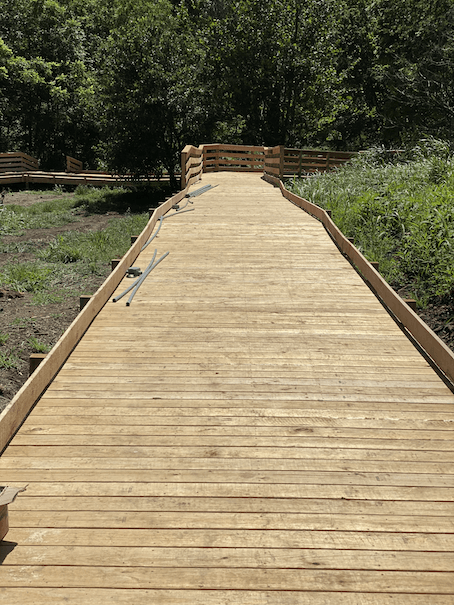 Trex Toasted Sand decking with Westbury railing, metal roof and