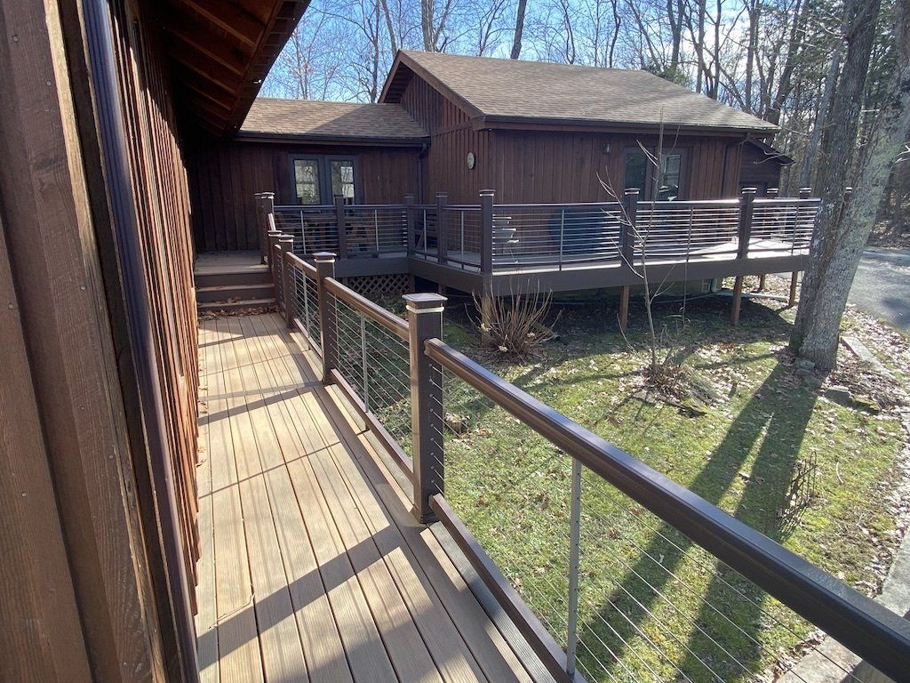 This deck features Verticable railing, which mixes the sleek look of cable with the durability of aluminum for a stylish and strong look.