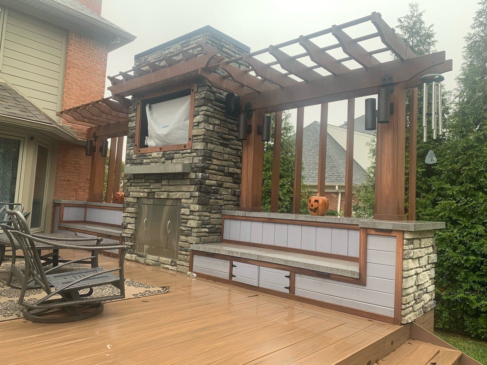 Trex Transcend Tiki Torch Decking with Trex Transcend Lava Rock border and trim.